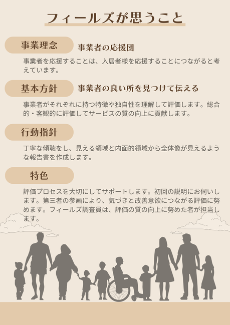 利用者にかかわる方々が良いサービスを提供できるように評価を通じて貢献したいと考えております。