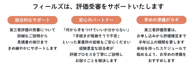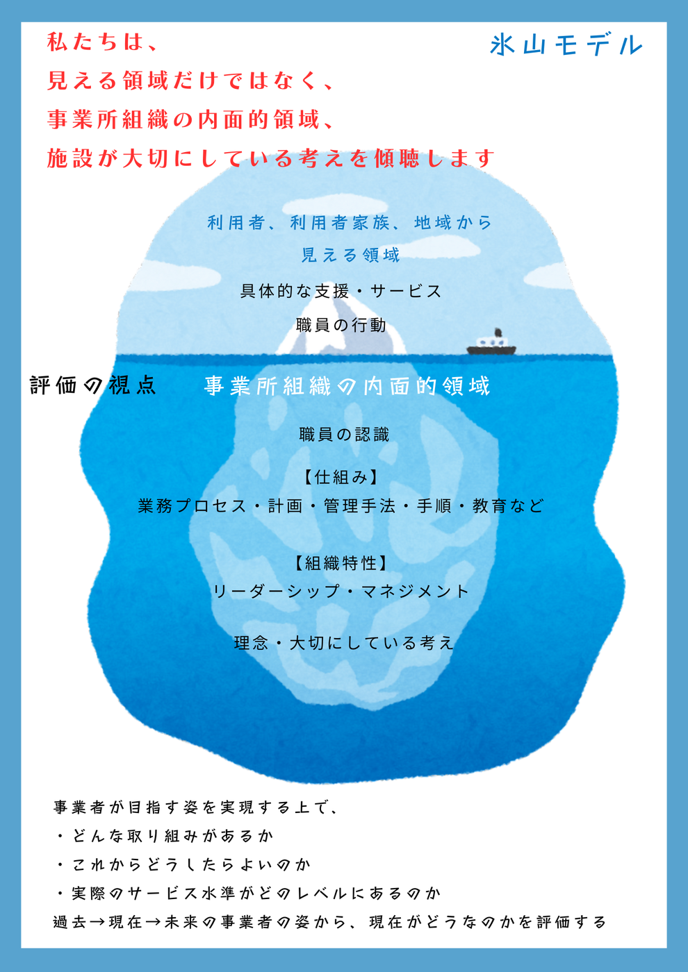 審査的な評価ではなく事業者・利用者・第三者の協力と気づきにより質の向上ができるように努めてまいります。