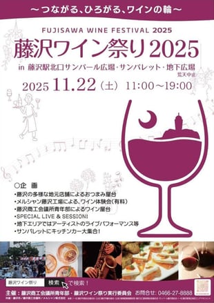 ③藤沢ワイン祭り2025 日時:11/22(土) 11:00~19:00 会場:藤沢駅北口サンパール広場ほか