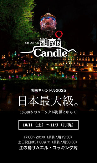 ①湘南キャンドル2025 日時:10/11(土)~11/3(月祝) 17時から 会場:江の島サムエルコッキング苑