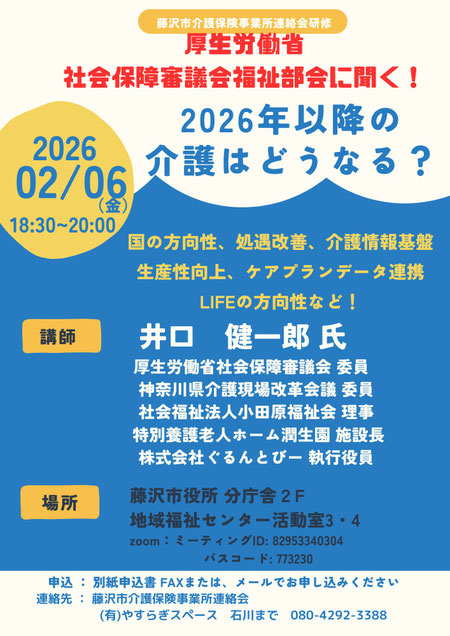 2026年2月6日に「厚生労働省 社会保障審議会福祉部会に聞く! 2026年以降の介護はどうなる?」と題した研修会を開催します。